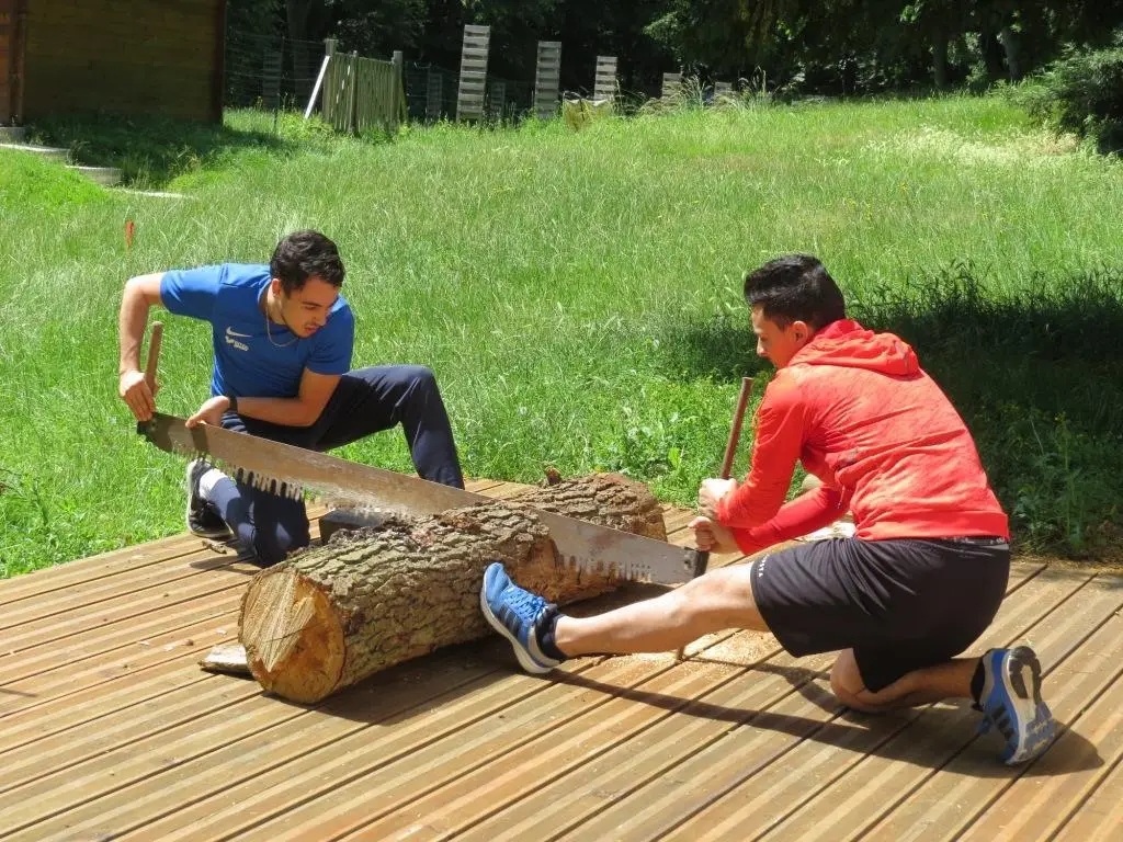 – un Univers PALEOFITNESS de haut vol, où la bûche fut reine sur tous les ateliers: transport de bûches (et de bûchettes!), lancer de bûches (et de bûchettes!) poussée-tractage de bûches (et de bûchettes!), et plein de parcours semés d’em-bûches (et d’em-bûchettes!)