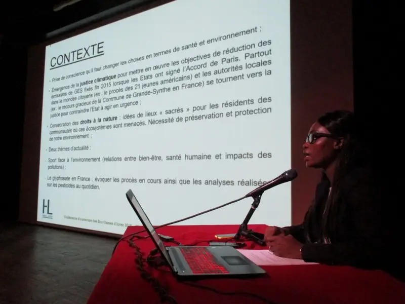 Une conférence d’ouverture s’est déroulée le mardi 27 novembre dans la salle de spectacles et de conférences de Jean Dame. La thématique générale de l’événement (santé de l’Humain, santé de la Planète) y a été déclinée en deux sous-thèmes particulièrement prégnants: