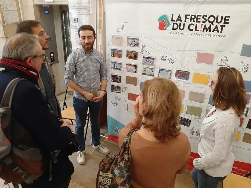 La Fresque du Climat: atelier sur le changement climatique, basé sur des cartes et qui fait appel à l’intelligence collective des participants pour décortiquer le fonctionnement du climat et les conséquences de son dérèglement.