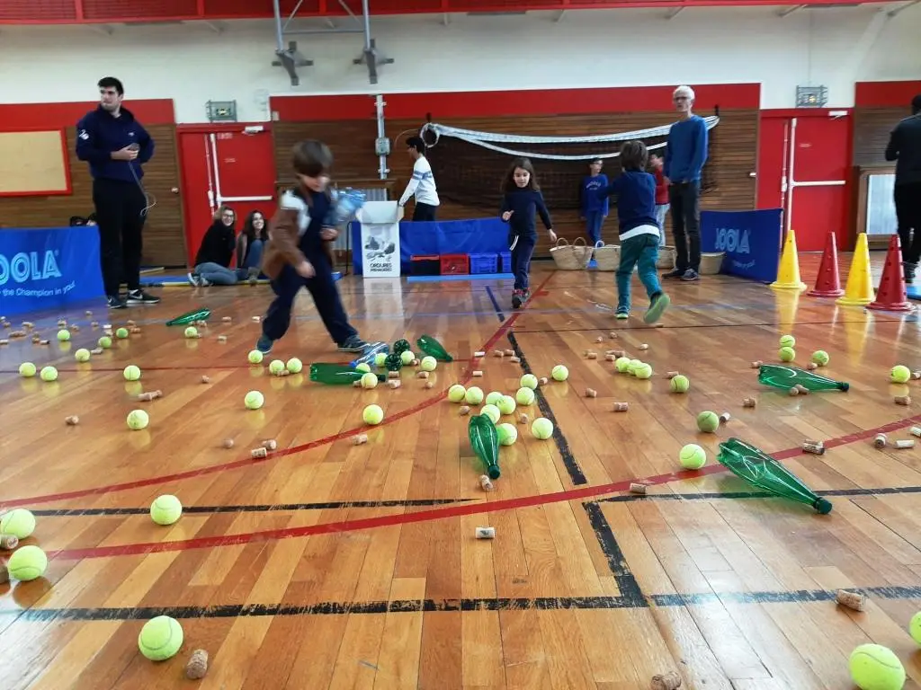 Cours, ramasse, trie ! Ramasser le plus vite possible des déchets éparpillés sur une zone « polluée » et en effectuer un tri sélectif dans les poubelles correspondantes.