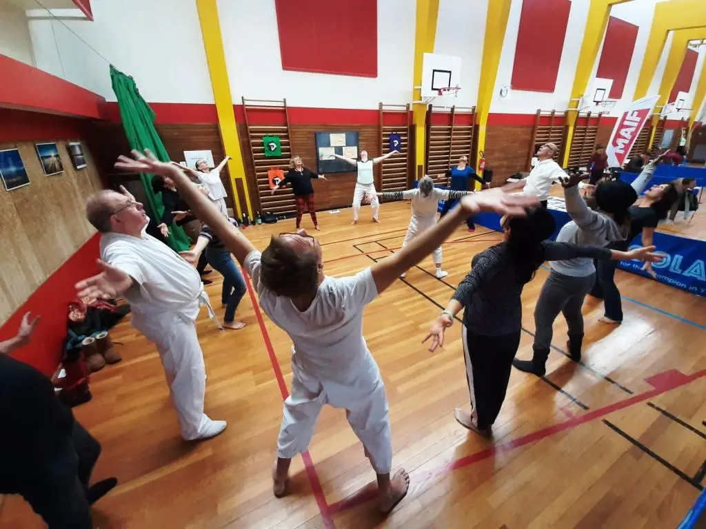 Energie, ou intensité ? A partir d’une posture de stretching Postural®, les participants constatent qu’une même action peut être réalisée selon différents degrés d’intensité. Ils participent ensuite à une initiation de Qi Gong / Tai Chi orientée sur l’énergie.